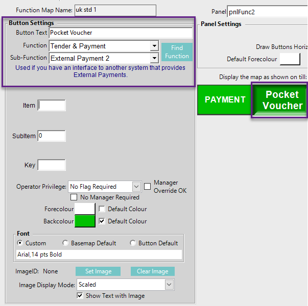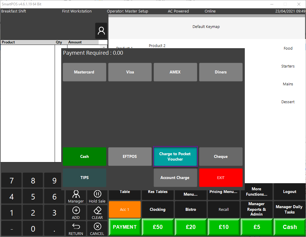 - Select the function button or Payments Panel and select 'Charge to Pocket Voucher'