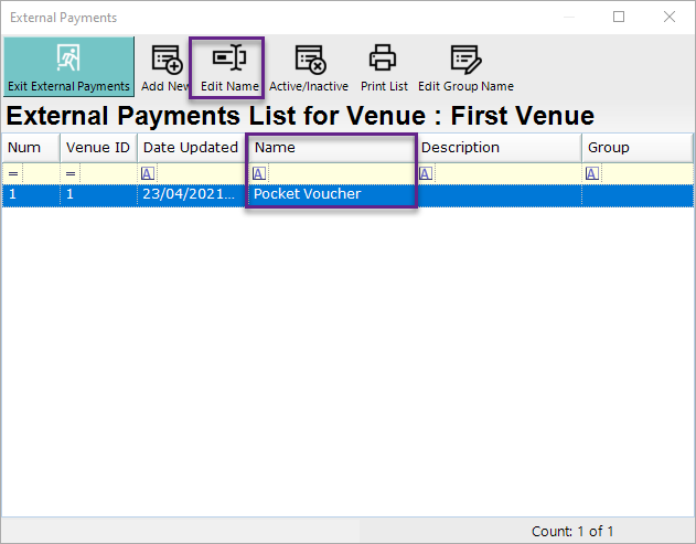 - Select the Venue you would like the Pocket Voucher External Payment to be named at.
