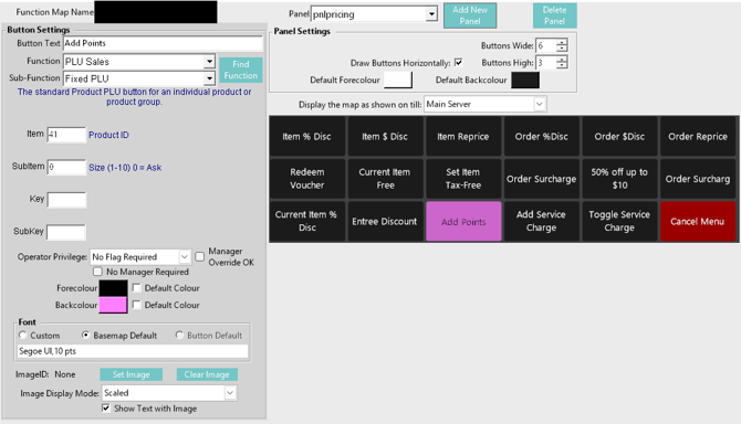 The Function is PLU Sales. The Sub Function is Fixed PLU. The Item is the Product ID of the 'Add Points' product. All other fields are left as default