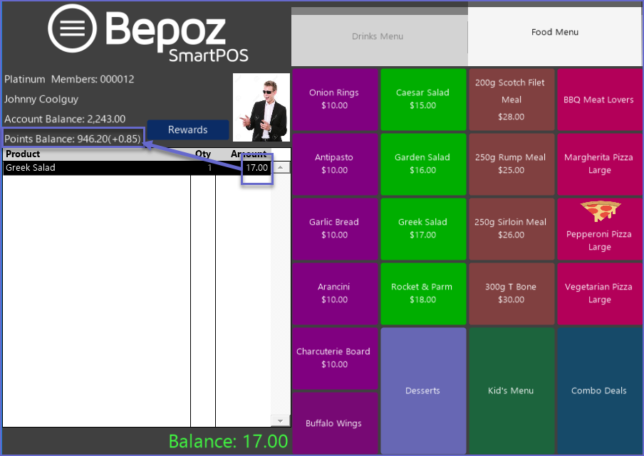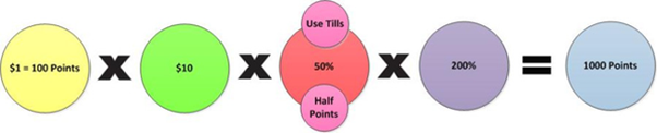 within each SmartPOS Workstation set up by Bepoz support which allocates a Points Profile to that SmartPOS Workstation - Below demonstrates how points are awarded and some examples of the different ways Points Profiles change the number of Points awarded