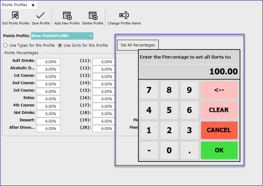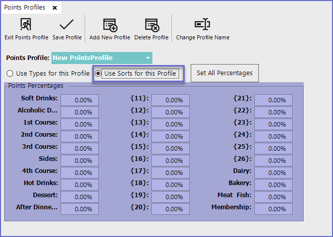 - This option will select the System's Product Sorts to set the Points percentage for the Profile