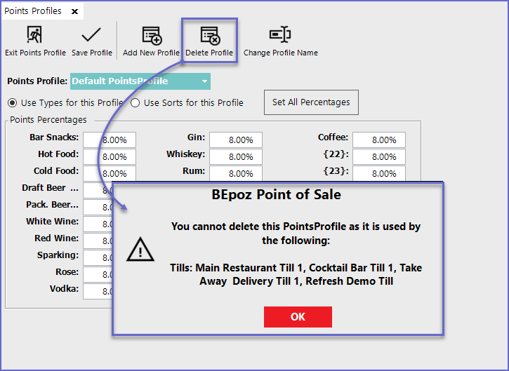 - However, the system will not allow Deleting if a Profile is currently being used by any of the Tills