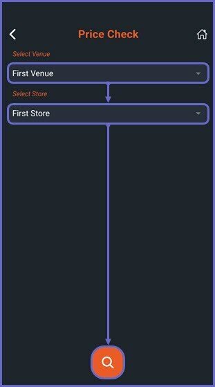 - This will open the Price Check home screen, proceed to select a Venue and Store to check the price of a Product