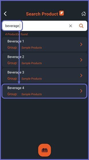 - Proceed and search for a desired product by typing the product name or by using the mobile Barcode Scanner option at the bottom of the screen