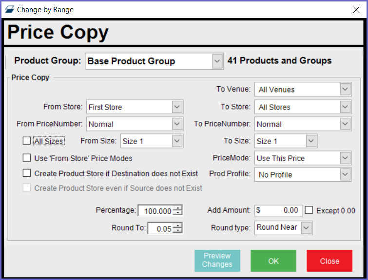 - The options here will look exactly the same as in the standard Change by Range Price Copy feature that is used within the Product List