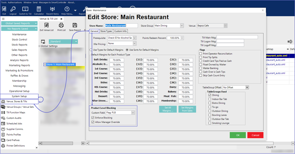 - System Setup: "Maintain Venue, Stores & Tills" Flag