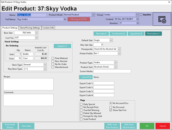 - To open an Edit Product window, either double-click on the Product you wish to edit or click the Edit Product button on the Product List Screen after selecting the Product