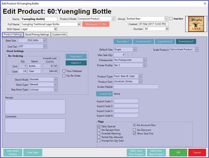 This article outlines the Products Settings Tab and the configurations that can be made to Products in BackOffice.
