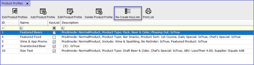• After clicking the Re-create KeyList Button in the Header Section of the Product Profiles Tab, SmartPOS will only display the Products which meet these new Parameters