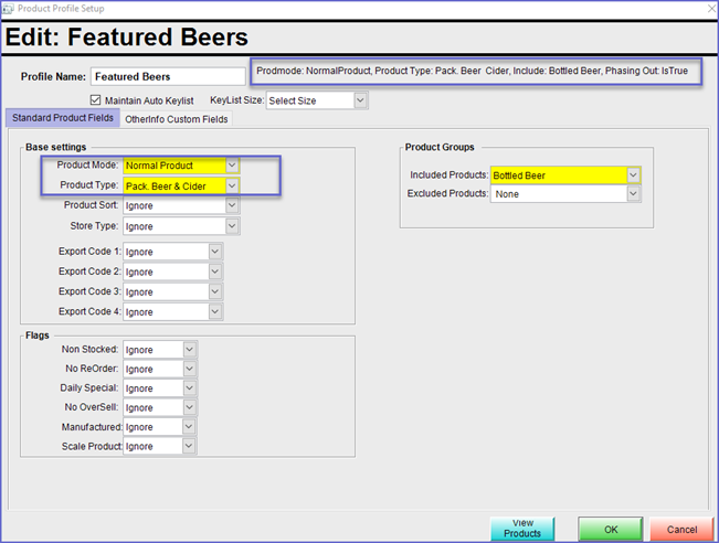 • For example, the parameters can be changed to Product Mode of Normal Product, Product Type of Pack. Beer & Cider, and Phasing Out flag enabled
