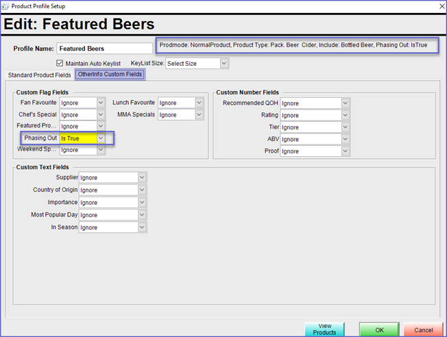 • By returning to the Product Profile Setup, and changing the parameters, the qualifying Products will dynamically change within the Keylist, therefore at the SmartPOS Workstation/s