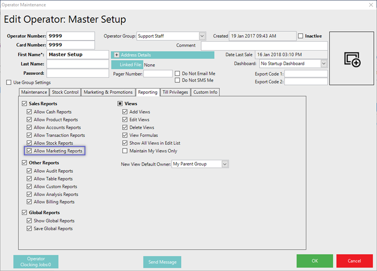 - For an Operator to have access to Marketing Reports, including the Product Promotion Summary, they must have the Allow Marketing Reports flag enabled