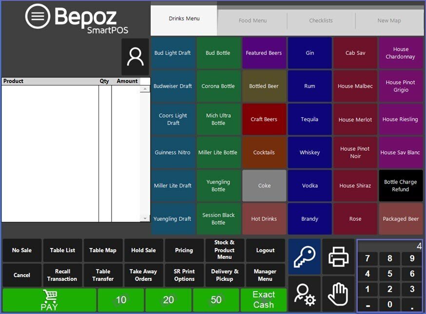 Within Bepoz, there are several types of Product buttons that can be added to a Product KeyMap (the grid of Products that are available via SmartPOS).