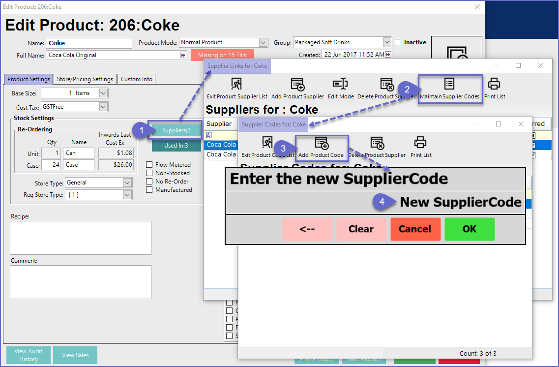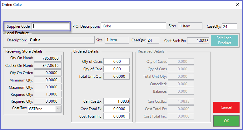 - This eliminates the process of selecting a local product when a Supplier Code isn't matched, as seen below