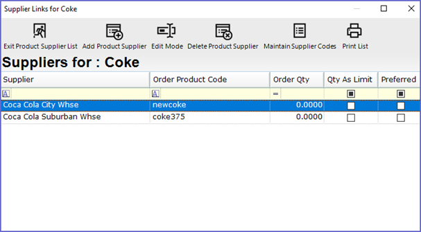 - This function is accessible via the Maintain Supplier Codes button when opening the Supplier Links window for a Product