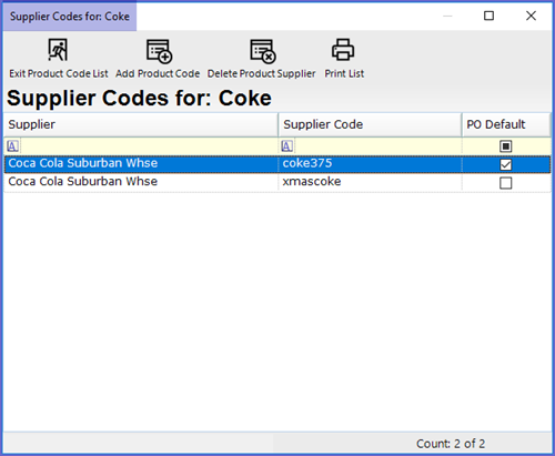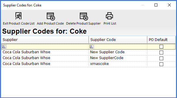 - If no Code is marked as the PO Default, a Supplier Code will not be automatically entered when creating a PO