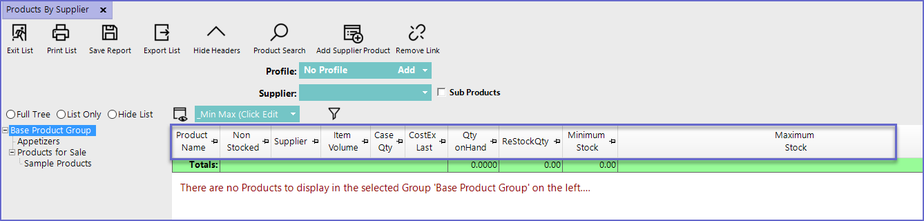 This article covers an overview of the Products by Supplier Report in BackOffice which offers extensive reporting on the Products allocated to each Supplier and offers an efficient editing alternative to View and Edit Products by Supplier.
