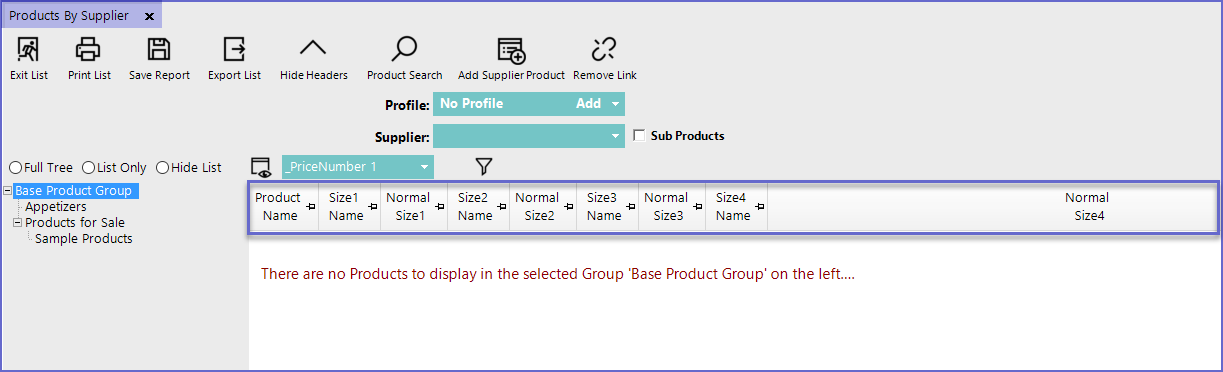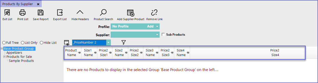 - Select Products by Suppliers which will open a new Products by Suppliers Window