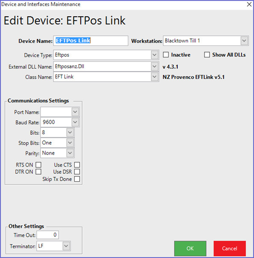 This article covers NZ Provenco EFTlINK V 5.1 ( Bepoz Version 4.1.0.0). There is an interface to EFTLink terminals via RS232. This is a standalone EFTPOS interface – meaning that each till connects direct to each EFTPOS terminal and each must have its own telephone line.