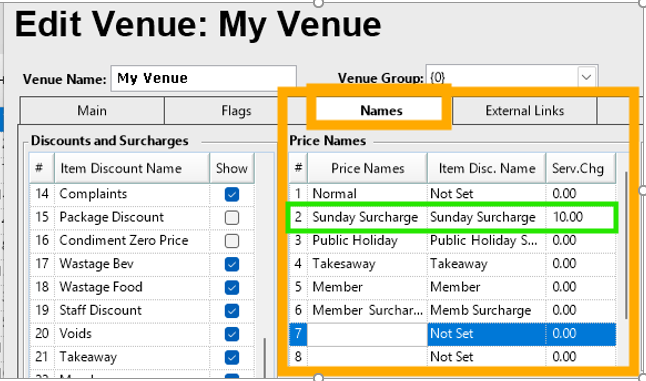 - NOTE: You should also set a Discount Totaliser if you have set one up in Discounts and Surcharges but this is not necessary. An example might be "Service Surcharges".