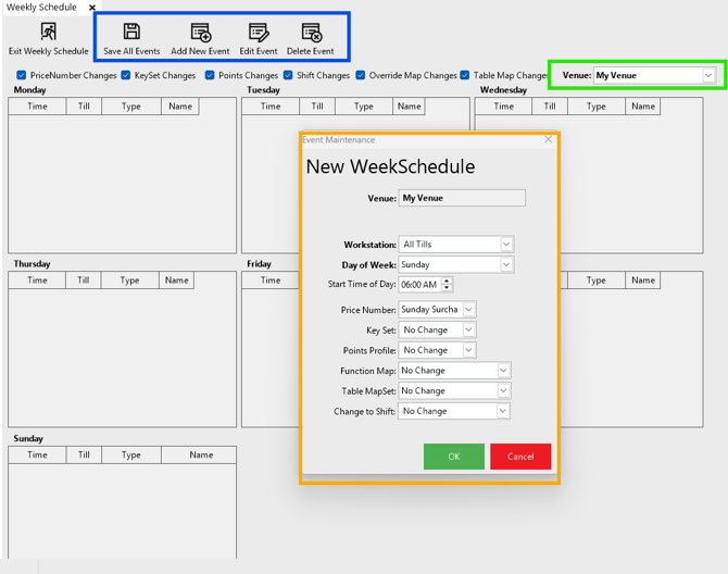 NOTE: Weekly schedules cannot be copied, so will need to be created for each Venue