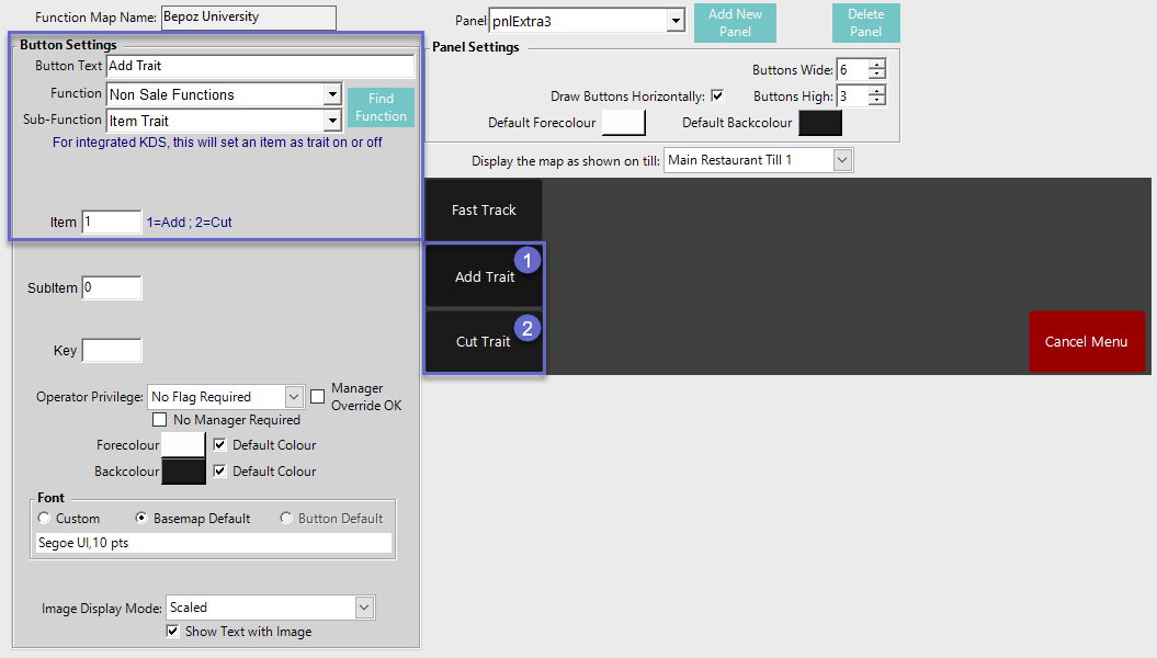 - Select the desired Till Function Panel, click on the desired Button space and then configure the Button Settings: