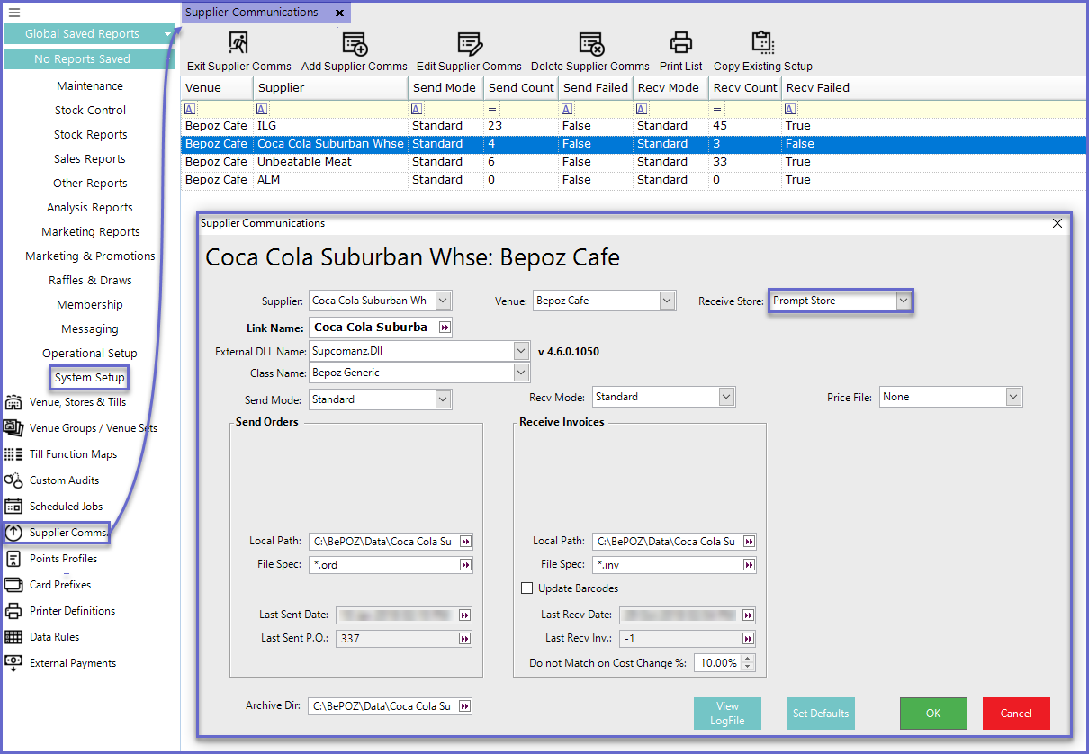 - There is an option when configuring within the Supplier Communications Menu – within the Receive Store drop-down list called "Prompt Store"
