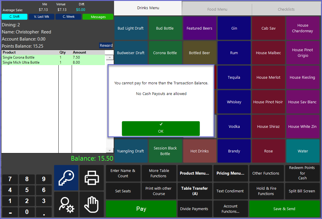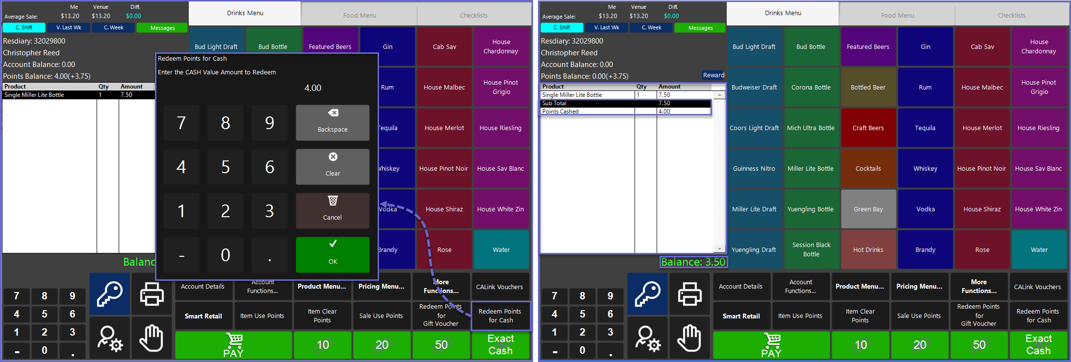 Depending on the Function Specific Configurations, the Operator can have the option to Pay Cash Out for these points or pay for the current transaction.