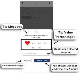 11. Tipping - Allows end-user to add tips before placing the order. You can select pre-set percentages, or a custom amount can be entered.