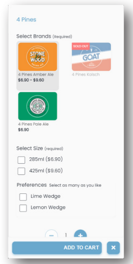 8. Product Group – Creates sets of different products and places them together on the front end. This is useful for venues that have several of the same product but of different brands and increases the number of products that can be shown on a single screen.