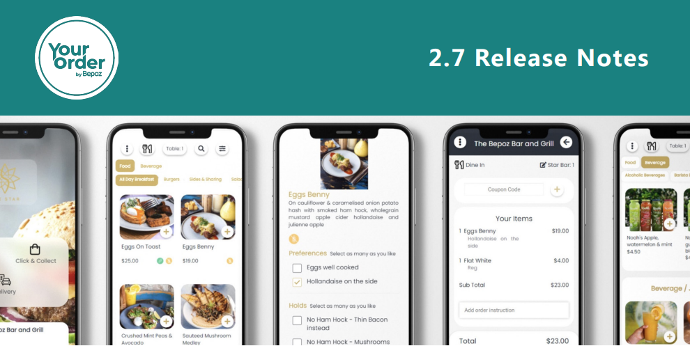 Bepoz has released new features and improvements to our online ordering platform YourOrder