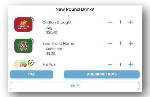 7. Round Drink – A Dine-In only feature that prompts users to reorder previous products without applying them manually. A notification feature is also available for mobile, which end-users can click to open the round drink panel.