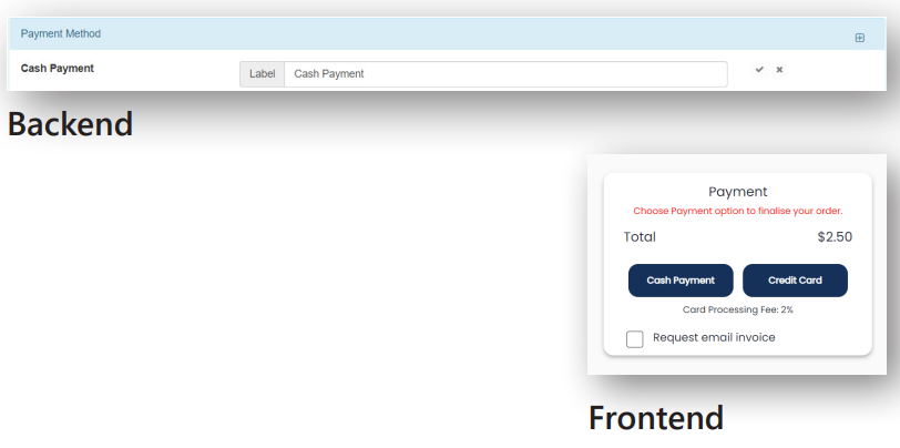 15. Customised Payment Names – Allows end-users to change the label of each payment method available in YourOrder. The custom label will be reflected on the front-end payment screen.