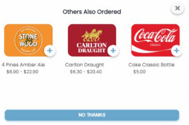 1. Item Suggestion (upsell items) – It allows users to upsell products through recommendation, by having a panel popup after the checkout button is clicked. The pop-up menu can be customised as per the order type or time.