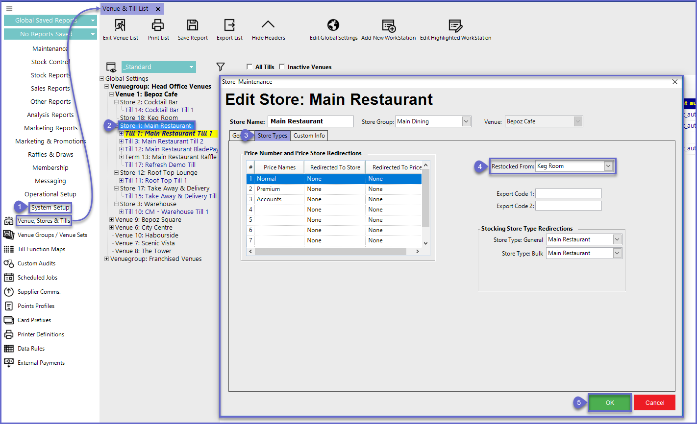 - System Setup: "Maintain Venue Stores and Tills" Flag