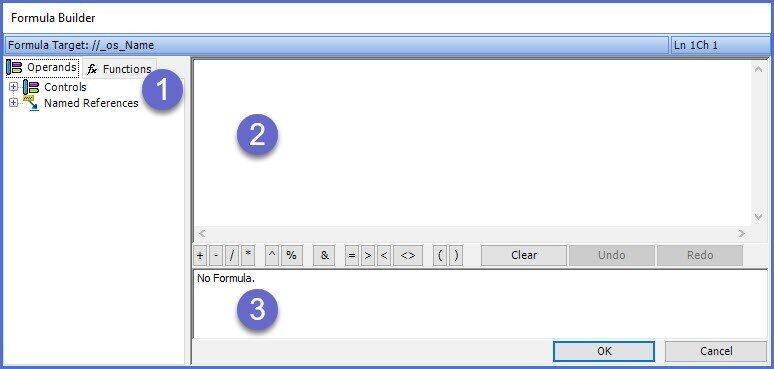 The Formula Builder window is broken down into three (3) sections