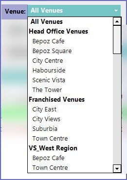 Venue- The Venue drop-down menu allows Operators to Report on All or Individual Venues depending on the Venues the Operator has access to