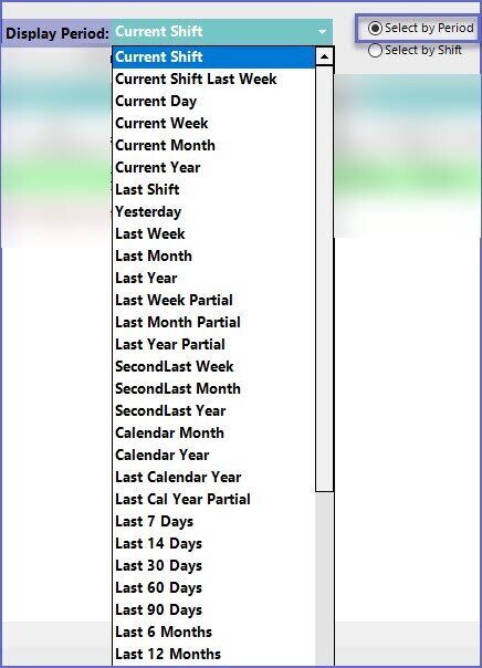 - Display Period allows an Operator to choose a time period over which the Report will be run for