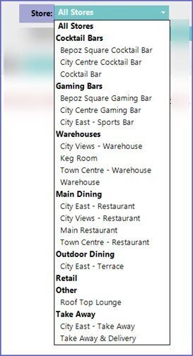 - Operators can select one particular Store, Store Group, or All Stores from the drop-down list