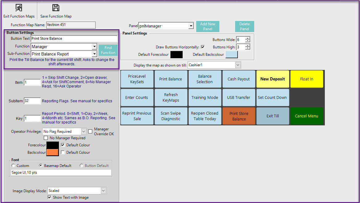 Parameters to can be set for on the Print Balance Function for SubItem and Key Values. The "Print Balance Report" Sub-Function is designed Printing a Till balance.