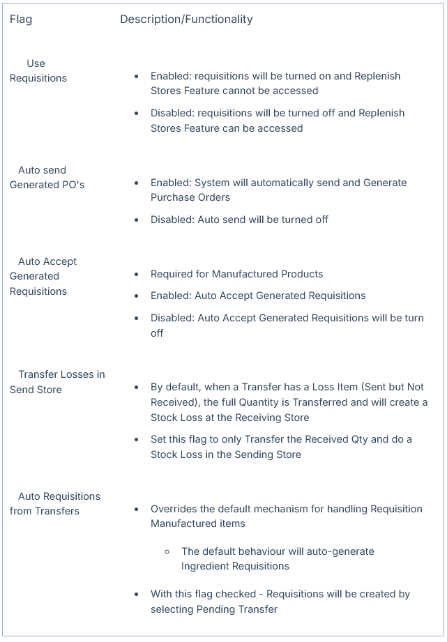 - In addition, there are a number of flags that relate to Requisitions which are detailed in the table below: