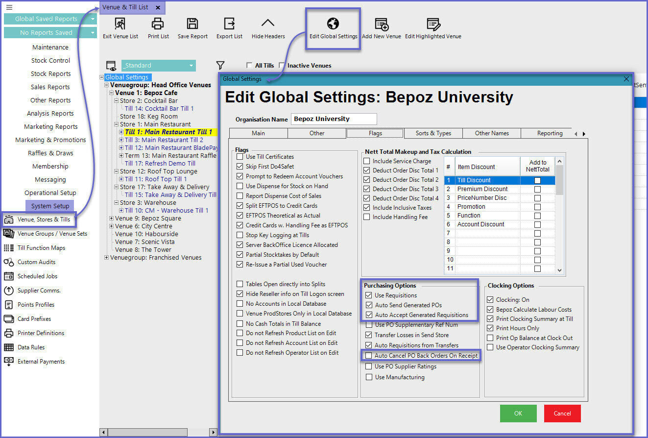 - Bepoz can only be set up to use either the Requisitions or Replenish Stores Feature