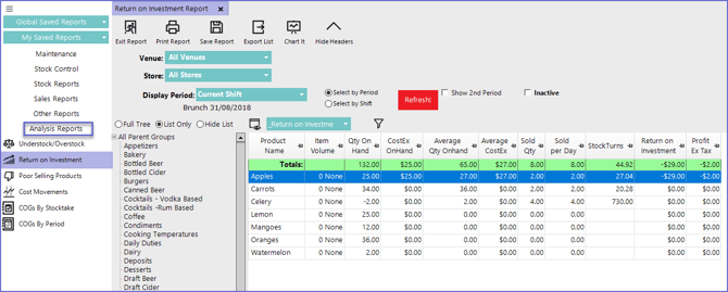 - The _Return on Investment View displays the total return business has earned from the products it invested upon