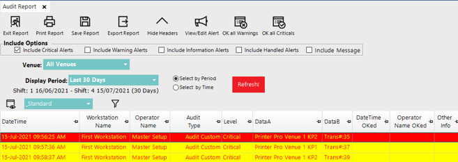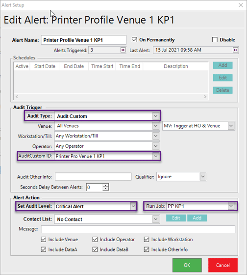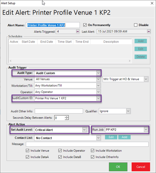 Create Alert Printer Profile Venue 1 KP1