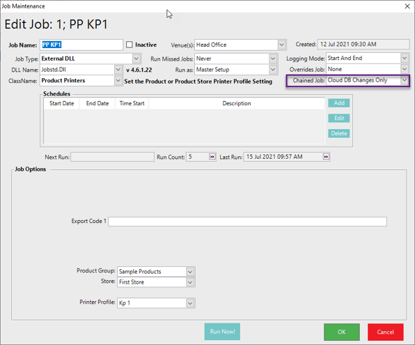 Create Scheduled job for Sending Daily changes only for Cloud Databases and chain the job to KP1 and KP2 Printer profile jobs