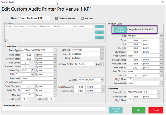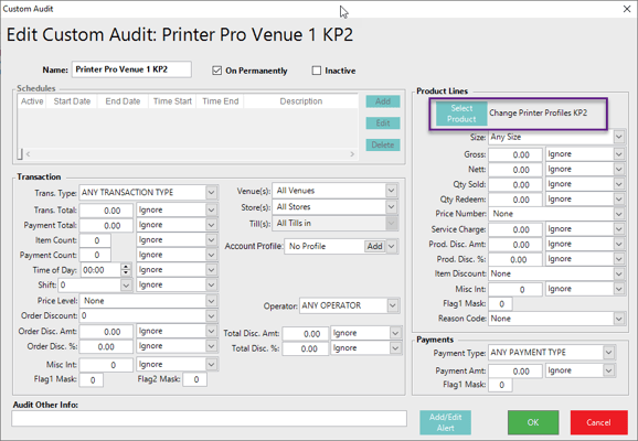 Create Custom Audit Printer Pro Venue 1 KP1 - Specify the System Product