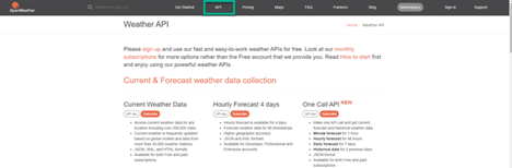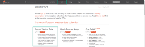 Subscribe to a Weather Data Collection in this example we will be using the 'Current Weather Data' (FREE)