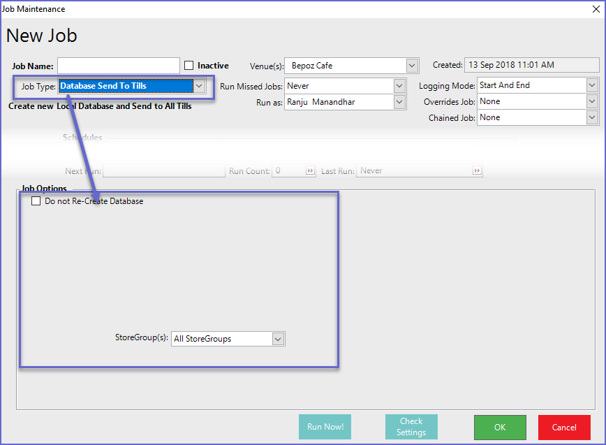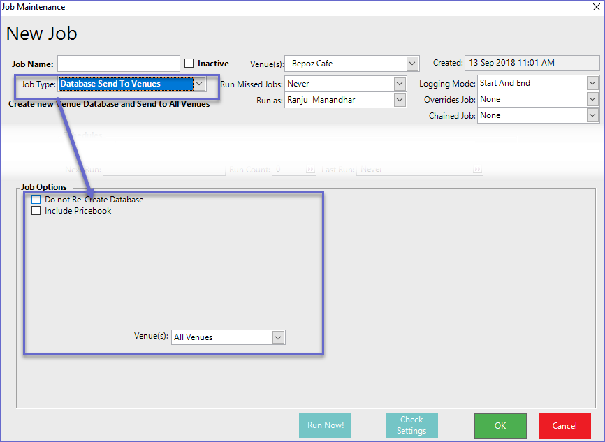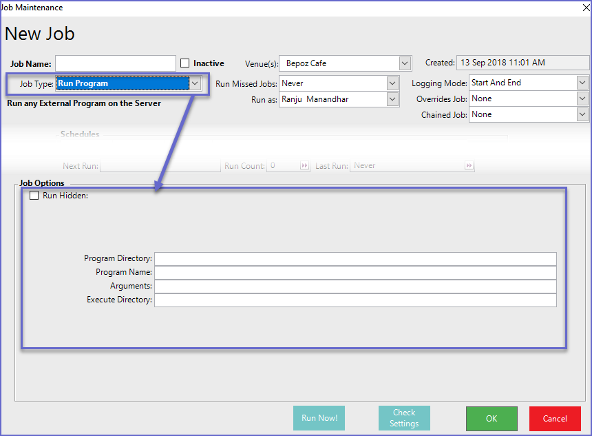- If an Operator requires to run any job immediately, they can Press the 'Run Job Now!' function button at the Menu Bar