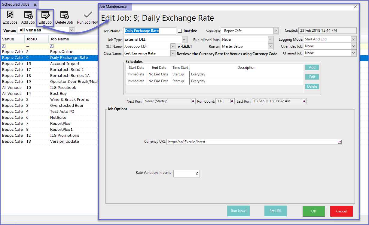 - To edit the existing Jobs, highlight the job and Click on the 'Edit Job' button at the menu bar