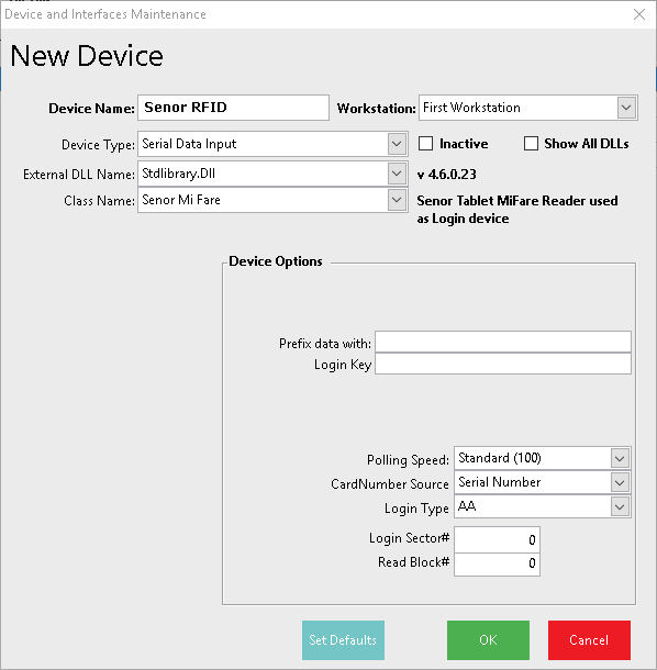 Login Type: Only Needed if using the CardNumber Source of Read Sector. This must match how the Cards are Programmed. See your card supplier/programmer.